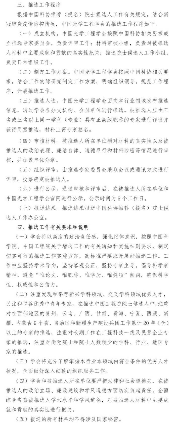 中国光学工程学会关于组织推选2021年两院院士候选人 的通知